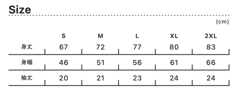【S】 身丈:67 身幅:46 袖丈:20