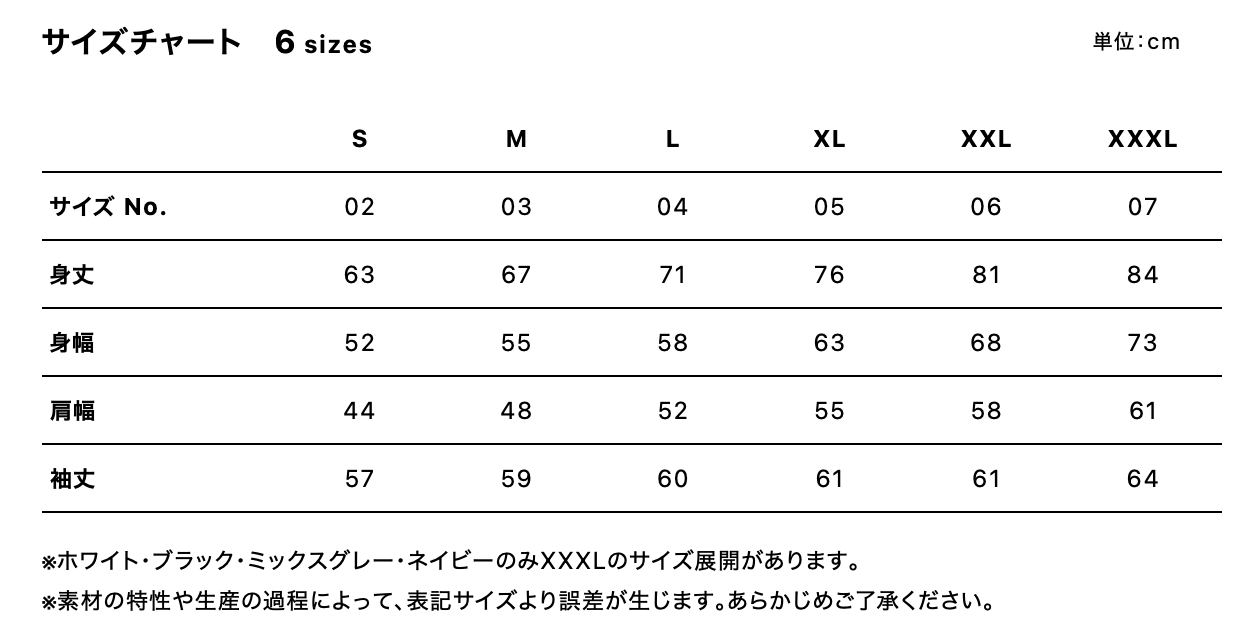 【S】 身丈:63 身幅:52 肩幅:44 袖丈:57